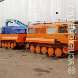 СпецификацияСнаряженная масса, кг 14370. Среднее давление на грунт, кг/см2 0,17. Максимальная скорость, км/ч 48. Максимальная скорость на плаву, км/ч 5. Количество мест в кабине 6. Количество спальных мест 2. Габаритные размеры (LxBxH), мм 11750х2940х3880 ТТМ снегоболотоход вездеход. Ширина по корпусу, мм 2500. Двигатель турбодизель, 300 л.с. Коробка передач механическая. Оборудование крано-манипуляторная установка ИМ-95-3332Л. Высота подъема люльки, м 14. Мак. грузоподъемность люльки, кг 250. Мак. грузоподъемность установки, кг 2830. Макс. высота подъема крюка, м 10,56.