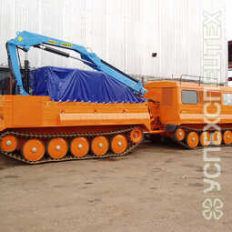 СпецификацияСнаряженная масса, кг 14370. Среднее давление на грунт, кг/см2 0,17. Максимальная скорость, км/ч 48. Максимальная скорость на плаву, км/ч 5. Количество мест в кабине 6. Количество спальных мест 2. Габаритные размеры (LxBxH), мм 11750х2940х3880 ТТМ снегоболотоход вездеход. Ширина по корпусу, мм 2500. Двигатель турбодизель, 300 л.с. Коробка передач механическая. Оборудование крано-манипуляторная установка ИМ-95-3332Л. Высота подъема люльки, м 14. Мак. грузоподъемность люльки, кг 250. Мак. грузоподъемность установки, кг 2830. Макс. высота подъема крюка, м 10,56.