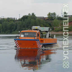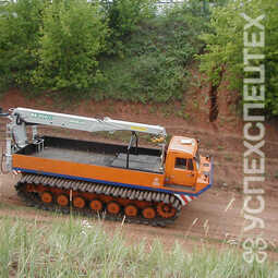 СпецификацияСнаряженная масса, кг 20600. Масса перевозимого груза, кг 4000. Среднее давление на грунт, кг/см2 0,2. Ширина пневмогусеницы, мм 1260. Максимальная скорость, км/ч 18. Максимальная скорость на плаву, км/ч 5. Количество мест в кабине 3. Габаритные размеры (LxBxH), мм 9900х4160х3950 ТТМ снегоболотоход. Двигатель ЯМЗ-238Б Турбодизель, V8, 14,86 л., 300 л.с.. Трансмиссия 4-ст, механическая. Дополнительное оборудование Крано-манипуляторная установка ИФ300С-15. Вылет стрелы крана-манипулятора, м. 8,53. Грузовой момент, т*м. 27. Грузоподъемность нетто макс, т 9. Максимальная высота подъема, м. 11,1.