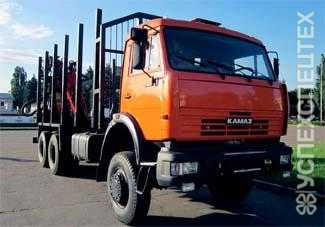 "Лесовоз на шасси КамАЗ-43118 Колесная формула 6Х6 Грузоподъемность 8 т3 Объем 22 м³ Габаритные размеры 8 х 2,5 х 3,95 м"