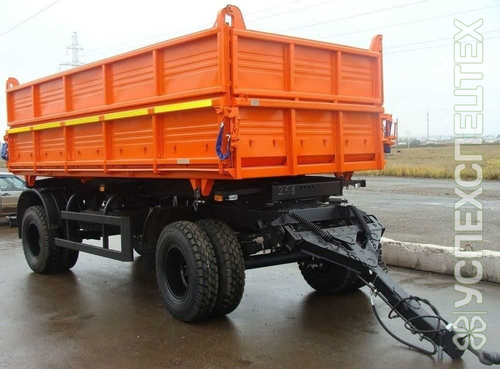 Рама: прицепа состоит из двух продольных лонжеронов двутаврового сечения, поперечин и двух балок круглого сечения. В передней части рамы, поперечины и усилительные косынки создают рамку для крепления поворотного круга. На первой поперечине находится уловитель стопора. На средних поперечинах находятся опоры для установки гидроцилиндра. На поперечине рамы установлен кронштейн откидного упора. В задней части к лонжеронам приварены кронштейны крепления задней подвески.