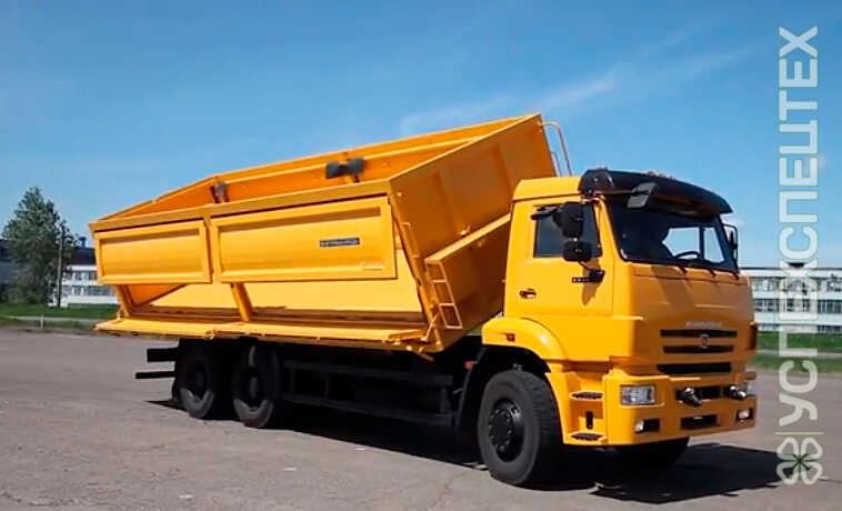 Защитный козырек на переднем борту предотвращает попадание на кабину сыпучих материалов при загрузке кузова;
