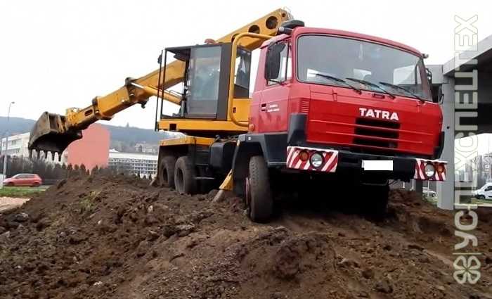Полноприводный планировщик экскаватор Татра УДС 114 весит 22 тонны 300 кг. Имеет такие параметры: