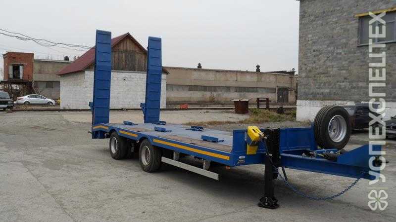 Технические характеристики прицепа: - Масса перевозимого груза, кг 16000 - Масса снаряженного полуприцепа, кг 4000 Максимально допустима нагрузка, кг - на оси 19800 - на петлю 200 - Петля сцепная – 50мм /90мм - Количество осей 2 - Подвеска пневматическая - Шины 235/75R17.5/8+1 - Количество колес, шт 8+1(запасное) - Ошиновка 2-х скатная - Трапы механические 2х секционные - Угол въезда, 10 град - Опорное устройство (механическое) 2-х скоростное - Пневматический привод тормозов WABCO - Стояночный тормоз: Энергоаккумуляторы WABCO (Германия) - Противооткатные упоры SUER (Германия) - Электрооборудование 24В, ERMAX (Германия) - Увязочные кольца в грузовой площадке 4 пары - Отбойные брусья
