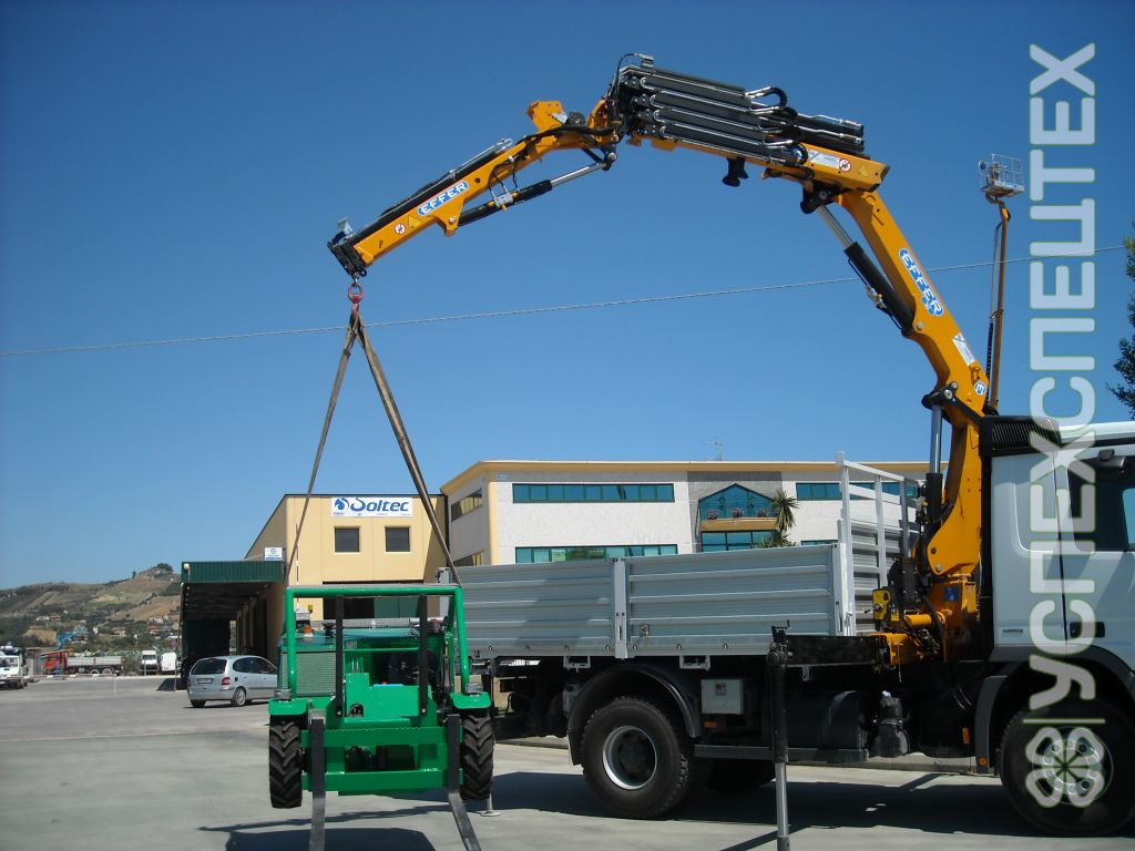 Кран-манипулятор приводится в действие при помощи гидравлики и не имеет противовеса, как в случае с телескопическими погрузчиками.