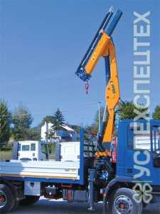 Грузоподъемность стрелы 1,5т, грузоподъемность автомобиля 3т, вылет стрелы 6м, габариты платформы 2,05х4,15м