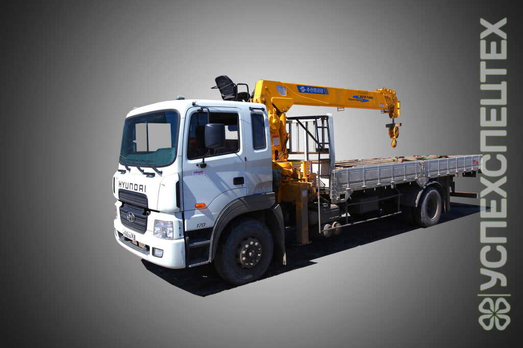 Грузоподъемность стрелы 1,5т, грузоподъемность автомобиля 3т, вылет стрелы 6м, габариты платформы 2,05х4,15м
