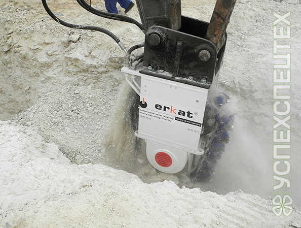 Фреза экскаваторная ERKAT (Германия) c поперечной режущей головкой серии ER 3000 предназначены для разработки асфальта, бетона, мягких и абразивных пород при проведении работ по разработке траншей, реконструкции и разрушении зданий и сооружений, в тоннелестроении, дорожном строительстве, разработке карьеров, фундаментных работах, смешивании формации грунта и др. Данная серия разработана для навески на экскаваторы массой от 45 до 70 тонн.