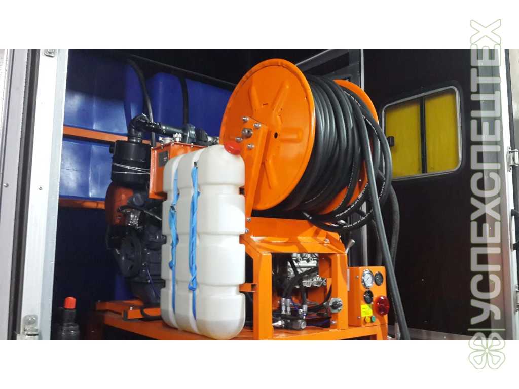 Специальное оборудование каналопромывочной машины КО-564-20 состоит из цистерны, водяного насоса с приводом, барабана с намотанным рукавом, гидравлической системы и вспомогательного оборудования.