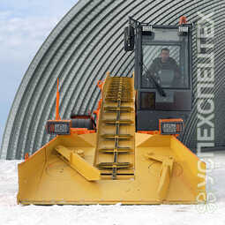 СпецификацияСнегопогрузчик ДМ09 с лаповым питателем и скребковым транспортером предназначен для погрузки предварительно собранного в валы и кучи снега в транспортные средства.