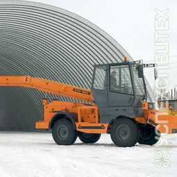 СпецификацияСнегопогрузчик ДМ 09 с лаповым питателем и скребковым транспортером предназначен для погрузки предварительно собранного в валы и кучи снега в транспортные средства.