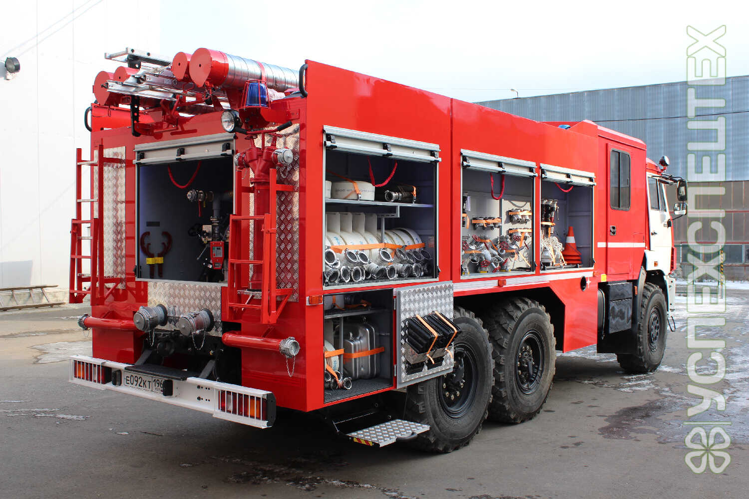 Система компрессионной пены NATISK-800KS. Привод компрессора воздушного от трансмиссии шасси. Рабочее давление 3-10 атм. Максимальный расход раствора 800 л/мин. Дальность струи из ствола ручного до 35 м. Максимальный расход сжатого воздуха 4 600 л/мин. Кратность 5-20. Дозирование пенообразователя 0,6 – 6%. Внутренний диаметр ствола ручного 25 мм (3 шт). Объем производимой пены от 25 000 л («мокрая пена») до 100 000 л («сухая пена»). Базовое шасси КАМАЗ-43118. Колесная формула 6х6. Мощность двигателя 300 л.с. Экологический класс Евро-5. Боевой расчет 6 чел. Цистерна для воды 5 000 л. Пенобак 300 л. Насос пожарный НЦПН-40/100.