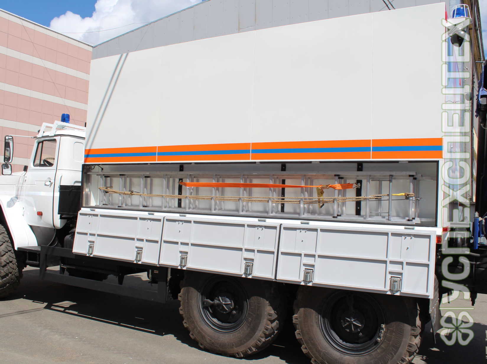 Комплектация: гидравлический аварийно-спасательный инструмент, генератор переменного тока 220V, осветительное оборудование, средства связи и оповещения, набор пневмодомкратов, режущее оборудование, средства защиты органов дыхания, пожарное оборудование. Возможна Комплектация высокоэффективными мобильными установками NATISK.