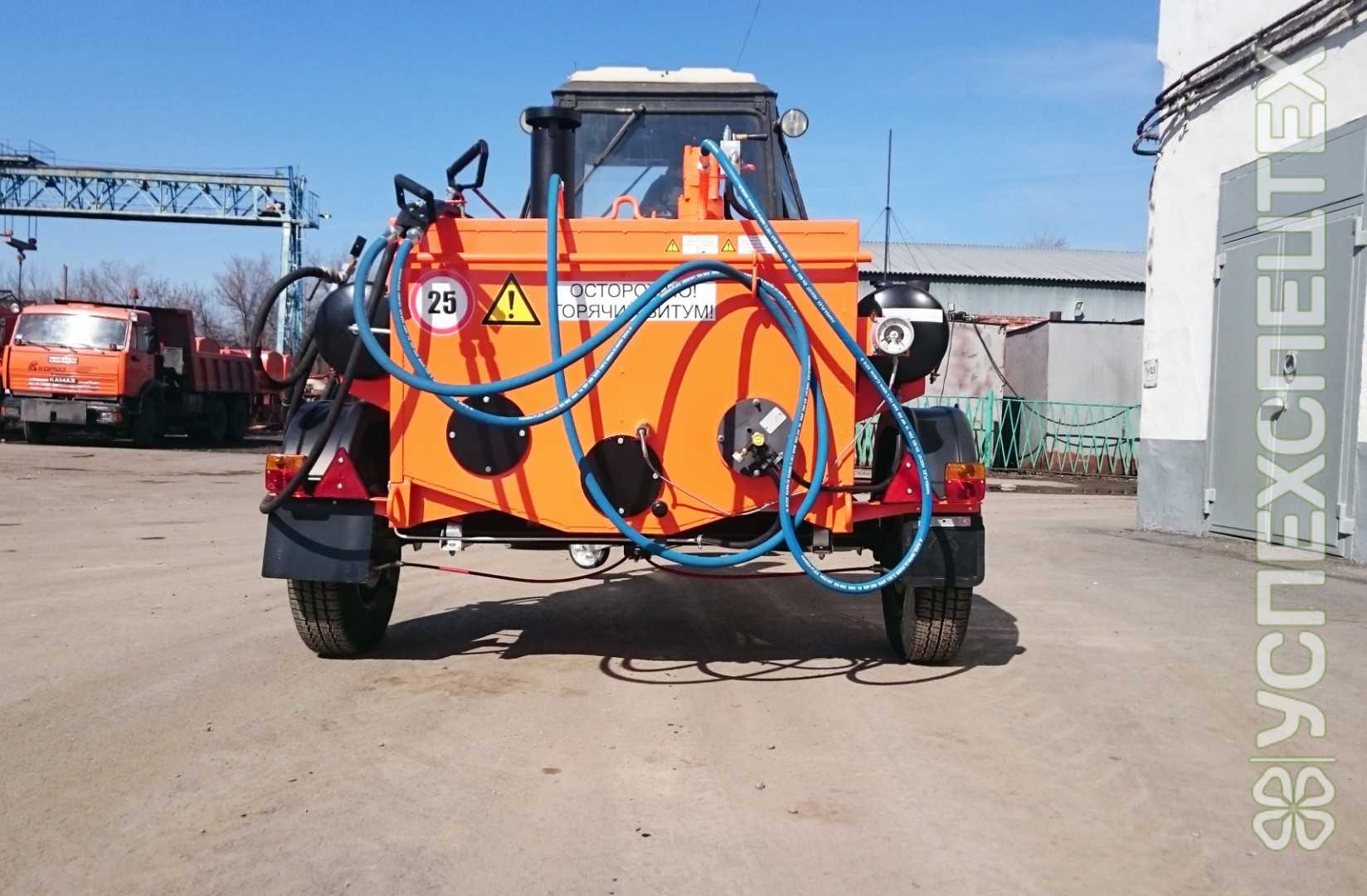Битумозаливщик БЗ - высокопроизводительное оборудование для санации швов, трещин, а также производства мелкого ремонта асфальтобетонных покрытий, с возможностью подключения пневматического инструмента. Представляет собой тракторный одноосный прицеп с установленной на нем термоизолированной ёмкостью, которая заполняется расплавленным битумом.