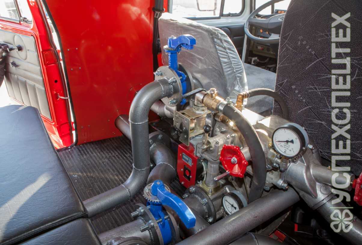 Объем цистерны, л 1600. Материал цистерны конструкционная или нержавеющая сталь/модифицированный полипропилен. Объем бака для пенообразователя, л 100. Материал бака для пенообразователя нержавеющая сталь/модифицированный полипропилен. Насос пожарный центробежный НЦПН 40/100 или НЦПК 40/100-4/400. Расположение насоса и пульта управления Заднее. Шасси ГАЗ C42R33. Колесная формула 4х2. Полная масса пожарного автомобиля, кг 8265. Габаритные размеры (ДхШхВ), м 7300х2400х2900. Боевой расчет, включая водителя, чел. 6.