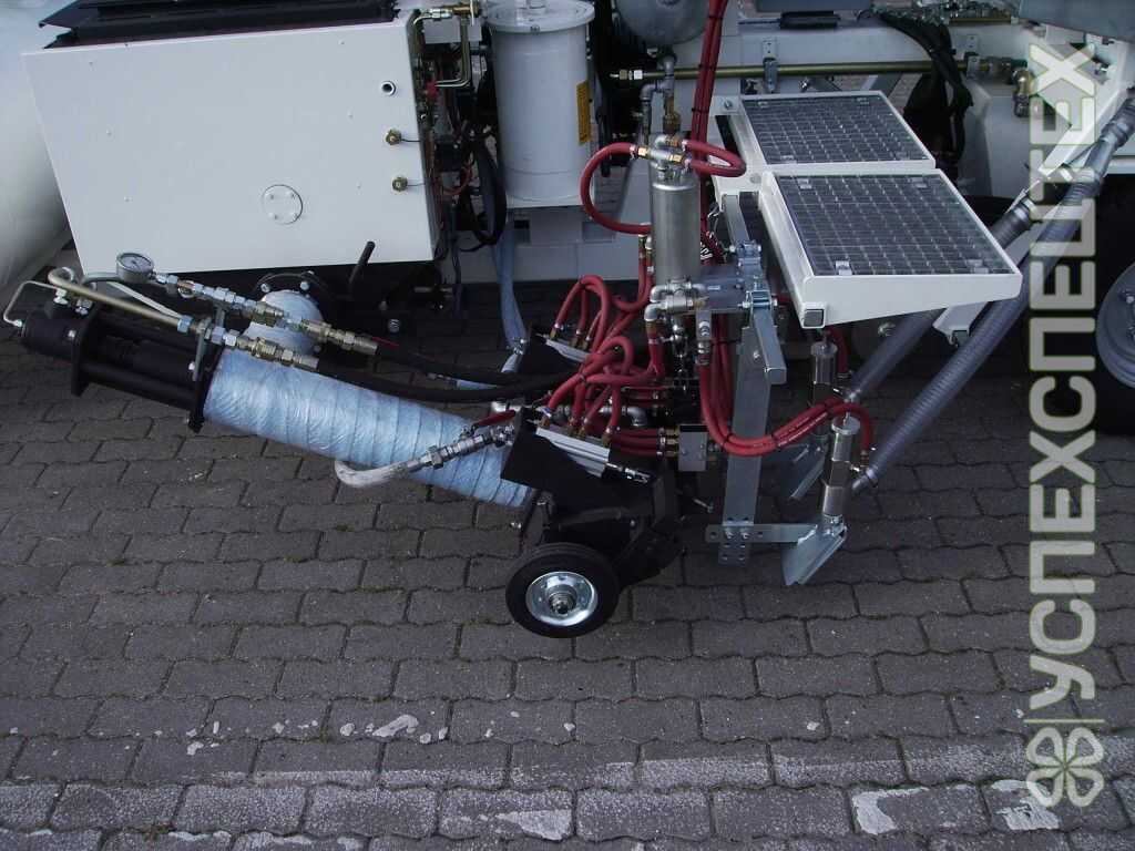 Машина для разметки холодным спрейпластиком. Внутреннее смешивание в смесительной головке. Оснащается разметочным компьютером. Запуск двигателя электростартером. Подача стеклошариков. Скорость передвижения до 16 км/час. Два бака для компонентов и бак для растворителя. Съёмный пистолет для спрейпластика и стеклошариков. Автоматическая промывка.