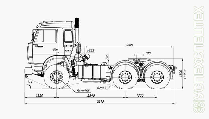 Место расположения штатное месторасположение на заднем свесе рамы автомобиля