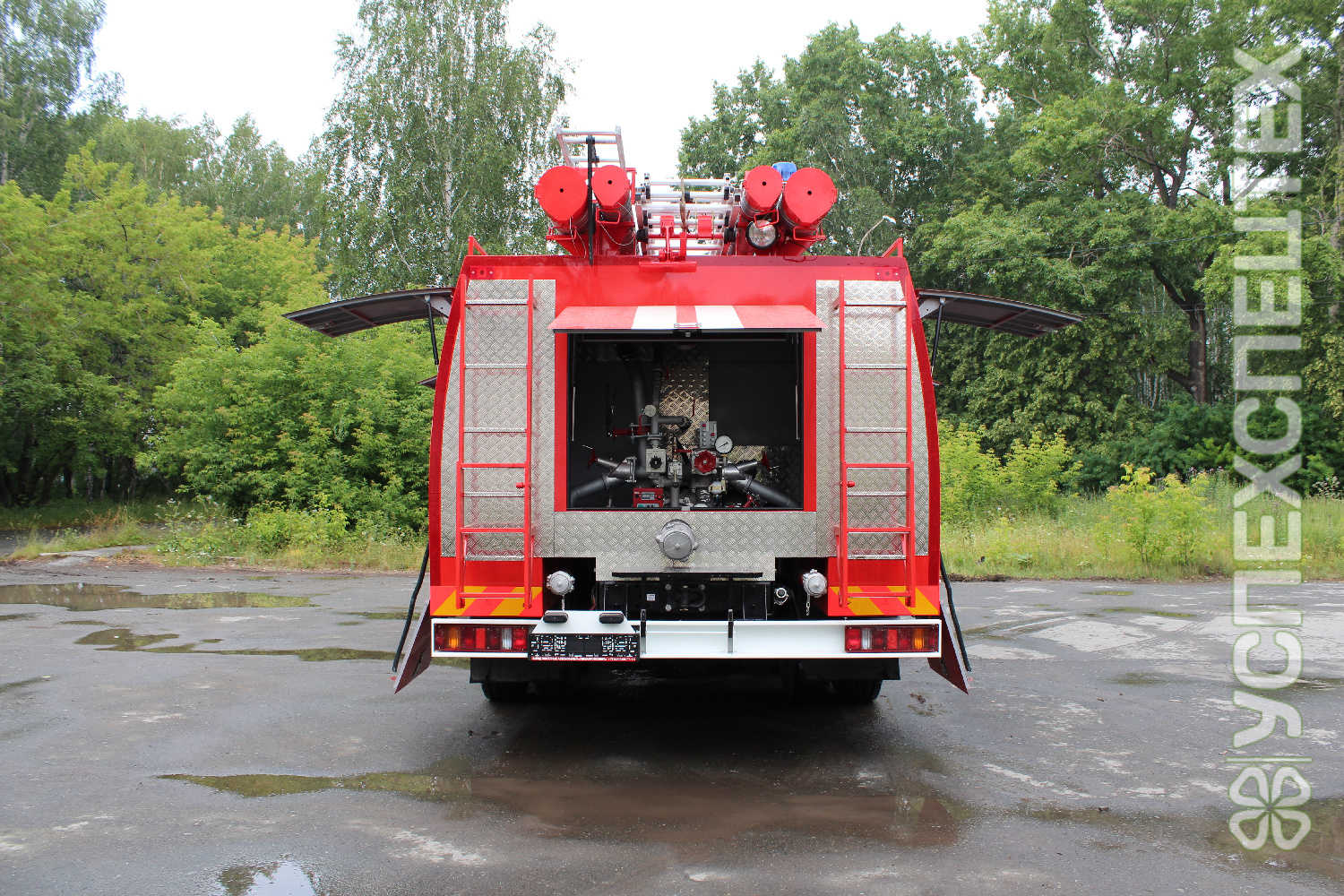 Система компрессионной пены NATISK-800KS. Привод компрессора воздушного от трансмиссии шасси. Рабочее давление 3-10 атм. Максимальный расход раствора 800 л/мин. Дальность струи из ствола ручного до 35 м. Максимальный расход сжатого воздуха 4 600 л/мин. Кратность 5-20. Дозирование пенообразователя 0,6 – 6%. Внутренний диаметр ствола ручного 25 мм (3 шт). Объем производимой пены от 25 000 л («мокрая пена») до 100 000 л («сухая пена»). Базовое шасси КАМАЗ-43118. Колесная формула 6х6. Мощность двигателя 300 л.с. Экологический класс Евро-5. Боевой расчет 6 чел. Цистерна для воды 5 000 л. Пенобак 300 л. Насос пожарный НЦПН-40/100.