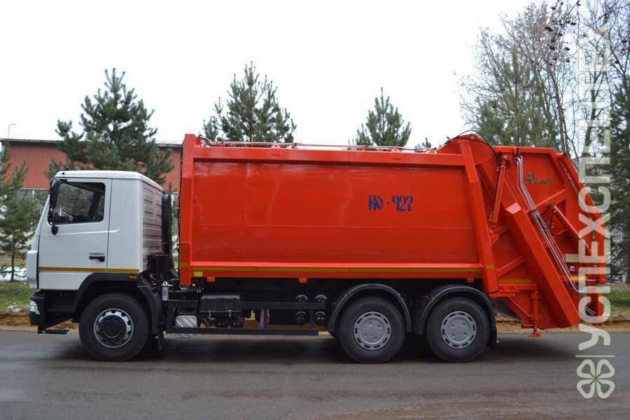 высокая степень уплотнения мусора (до 6), позволяющая загружать в кузов в зависимости от его вместимости и исходной плотности твердых бытовых отходов от 70 до 110 евроконтейнеров объемом 1,1 м³;