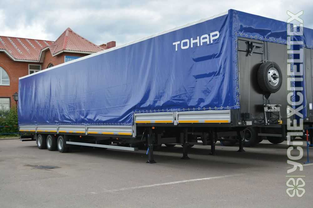 Полная масса полуприцепа, не более, кг. 32 000 Подвеска зависимая, на продольных упругих рычагах с пневматическими упругими элементами и телескопическими гидравлическими амортизаторами Подъёмные передняя ось входит в базовую комплектацию Оси колес производства ООО МЗ "Тонар" Колеса ошиновка двухскатная, диски 6,75х17,5 Шины бескамерные 235/75 R17,5 Рабочая тормозная система с двухпроводным пневматическим приводом c электронным управлением EBS конфигурации 2S/2M действующей на тормозные механизмы барабанного типа Стояночная тормозная система механический привод с пружинными энергоаккумуляторами на средней и задней осях и пневматическим ручным краном управления Аварийная тормозная система механический привод с пружинными энергоаккумуляторами на средней и задней осях к тормозным механизмам колёс Опорное устройство на 24 т. ДОПОЛНИТЕЛЬНЫЕ ОПЦИИ: Изменения цвета тента по желанию заказчика по запросу Нанесения логотипа заказчика рассчитывается индивидуально Установка осей BPW по запросу Установка дисков «Леммерц» и резины «Мишлен» по запросу Используемые комплектующие: Подшипники ступиц смазываются «синей» смазкой MS1510Blue. Данная смазка совместима с литиевыми смазками и является высокотемпературной пластичной смазкой предназначенной для тяжело-нагруженных узлов, а также содержит антиокислительные присадки, обеспечивающие длительную работоспособность при высоком давлении и температуре. Корончатая гайка регулировки подшипника ступиц со шплинтовкой позволяет не беспокоиться о надёжности работы ступичного узла. Кран управления пневмоподвеской позволяет нагнетать и спускать воздух в пневмоподвеску до и после разгрузки С помощью крана растормаживания осуществляется управление стояночным тормозом Противооткатный башмак. Каждый полуприцеп комплектуется несколькими пластиковыми башмаками. Количество башмаков варьируется в зависимости от модели полуприцепа. Ходовая часть Усиленные кронштейны рессор. Дополнительные раскосы, усиливающие конструкцию, Энергоаккумуляторы на балке оси с дополнительными удерживающими кронштейнами. Дополнительный поддерживающий кронштейн энергоаккумулятора на балке оси. Обновленная конструкция: задний бампер теперь располагается выше; немного изменена его конструкция. Электрооборудование: жгут дорожной сигнализации с соединительным разъёмом; схема двухпроводная.