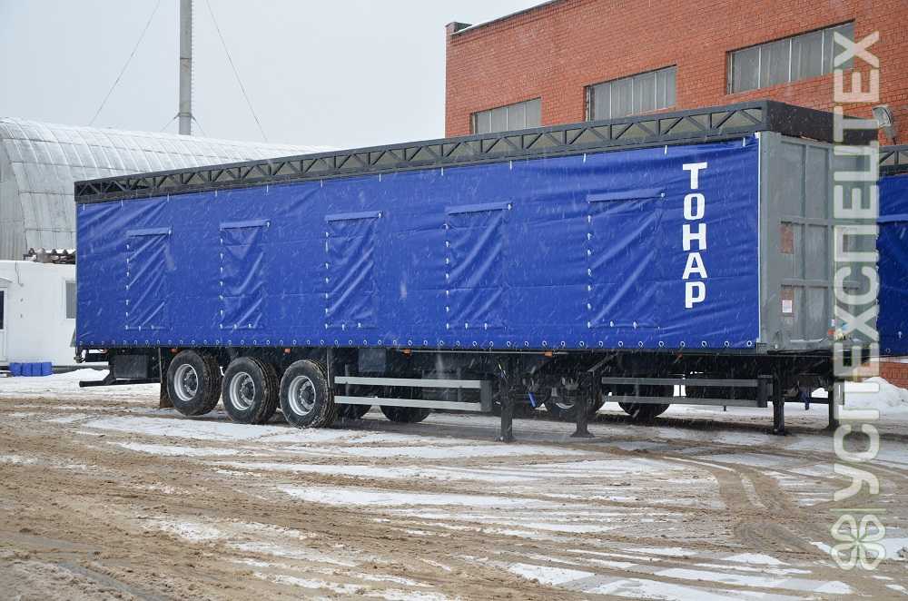 Тент демонтируется или сдвигается за заднюю стенку полуприцепа.