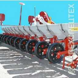 СпецификацияСеялка точного высева СТВ-12 является универсальной пневматической сеялкой, пунктирного высева семян следующих культур: кукуруза, крупная фасоль, фасоль низкокустовая, горох, земляной орех, подсолнух, соя, рапс, лук, капуста, и другие семена с минимальным размером 2,5 мм. В стандартном исполнении высевающие элементы для сева кукурузы устанавливаются на ширину междурядья 70 см, а для сева свеклы на 45 см. Контроль ширины междурядий производится замером от середины одного сошника до середины другого сошника.