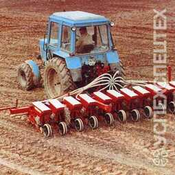 СпецификацияСеялка точного высева СТВ-12 является универсальной пневматической сеялкой, пунктирного высева семян следующих культур: кукуруза, крупная фасоль, фасоль низкокустовая, горох, земляной орех, подсолнух, соя, рапс, лук, капуста, и другие семена с минимальным размером 2,5 мм. В стандартном исполнении высевающие элементы для сева кукурузы устанавливаются на ширину междурядья 70 см, а для сева свеклы на 45 см. Контроль ширины междурядий производится замером от середины одного сошника до середины другого сошника.