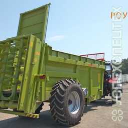 СпецификацияРОУМ-14 - единственный производимый в России одноосный разбрасыватель твердых органических удобрений грузоподъемностью 14 т. Предназначен для поверхностного внесения в почву твердых органических удобрений.