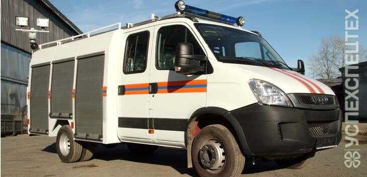 Комплектация: гидравлический аварийно-спасательный инструмент, генератор переменного тока 220V, осветительное оборудование, средства связи и оповещения, набор пневмодомкратов, режущее оборудование, средства защиты органов дыхания, пожарное оборудование. Возможна Комплектация высокоэффективными мобильными установками NATISK.
