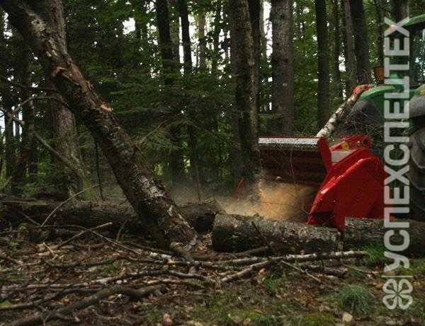срезает и измельчает деревья, кусты и ветки до 20 см в диаметре;