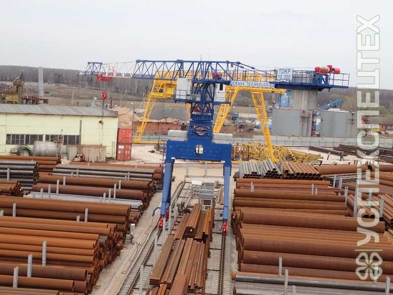 Портальный кран-погрузчик TDKP-10.З00 является передвижным рельсовым полноповоротным краном с неповоротной башней и балочной стрелой.
