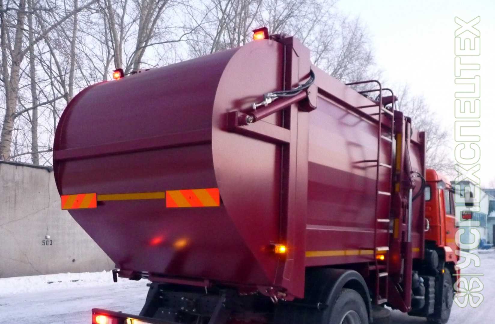 В состав специального оборудования входят: кузов с задней крышкой, уплотняющий механизм, выталкивающая плита, манипулятор, гидравлическая и электрическая системы. Загрузка отходов в пресс-камеру производится манипулятором. Уплотняющий механизм - это плита ковшового типа. Размещается в пресс-камере, совмещенной с загрузочным бункером. Выталкивающая плита производит выгрузку мусора из кузова. При загрузке кузова выталкивающая плита создает противодавление на мусор, обеспечивая его эффективное уплотнение. Пресс-камера выполнена из износостойкого материала HARDEX.