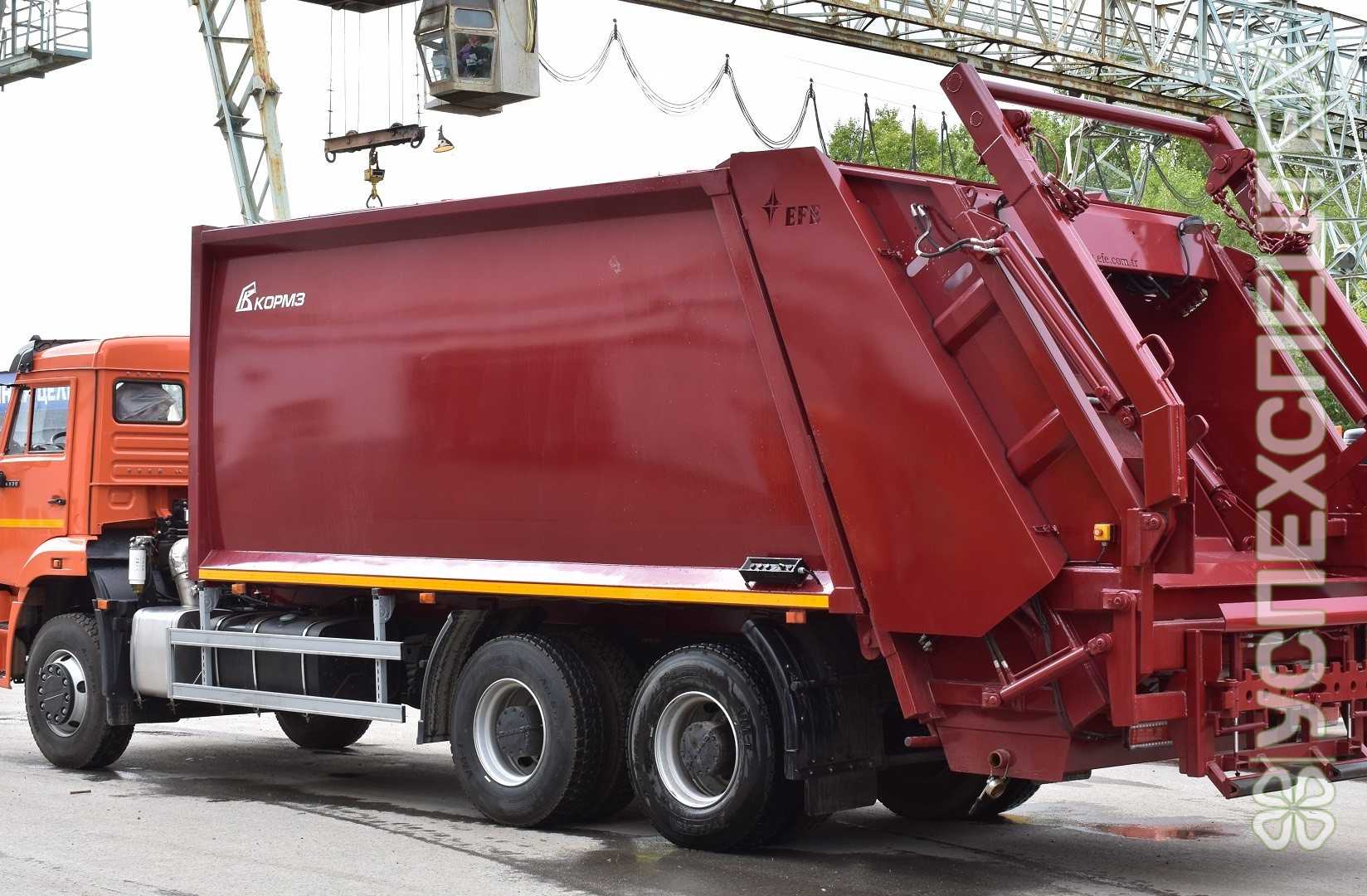 В состав специального оборудования входят: кузов с задней крышкой, уплотняющий механизм, выталкивающая плита, манипулятор, гидравлическая и электрическая системы. Загрузка отходов в пресс-камеру производится манипулятором. Уплотняющий механизм - это плита ковшового типа. Размещается в пресс-камере, совмещенной с загрузочным бункером. Выталкивающая плита производит выгрузку мусора из кузова. При загрузке кузова выталкивающая плита создает противодавление на мусор, обеспечивая его эффективное уплотнение. Пресс-камера выполнена из износостойкого материала HARDEX.