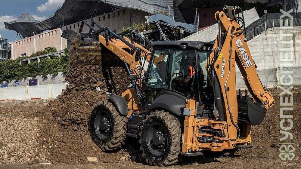 Основной отличительной чертой этой техники является принцип равных колес, который позволяет добиться лучших характеристик проходимости, устойчивости и маневренности. Такое техническое решение позволит использовать экскаватор-погрузчик даже при повреждении одного из колес. При этом не требуется остановки строительного процесса на длительное время, стоит только переставить поврежденное колесо вперед.
