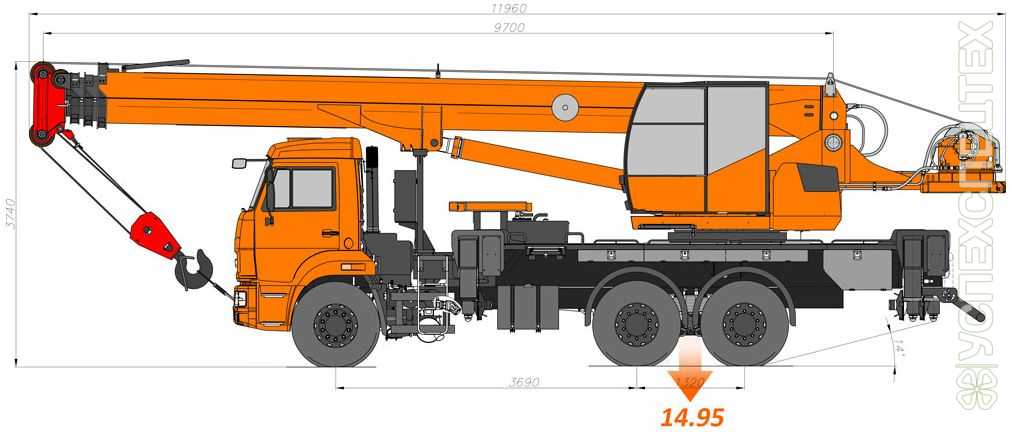 Грузоподъемность 25 тонн на крюке.