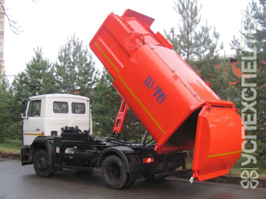 Мусоровоз контейнерный КО-440А1 предназначен для кузовной системы cбора и вывоза крупногабаритного бытового и строительного мусора, а также для перевозки и самосвальной выгрузки различных сыпучих и крупногабаритных грузов.