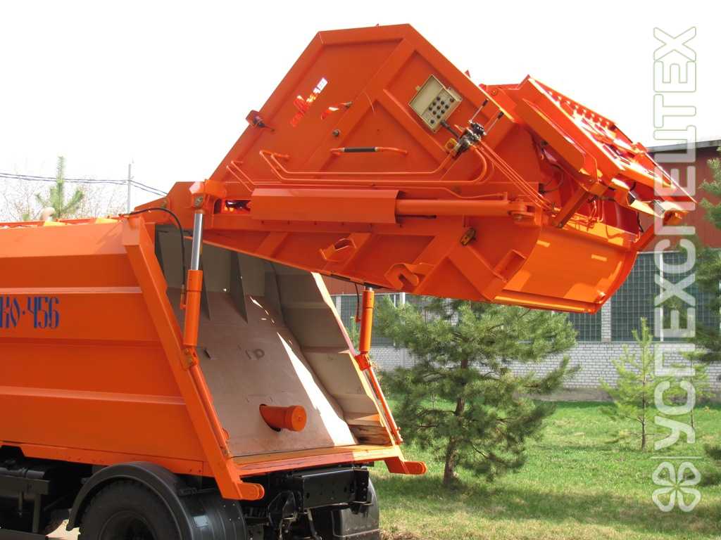 В состав специального оборудования входят: кузов, задний борт, толкающая плита, боковой манипулятор, гидравлическая и электрическая системы.