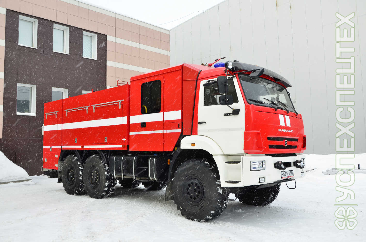 Система компрессионной пены NATISK-800KS. Привод компрессора воздушного от трансмиссии шасси. Рабочее давление 3-10 атм. Максимальный расход раствора 800 л/мин. Дальность струи из ствола ручного до 35 м. Максимальный расход сжатого воздуха 4 600 л/мин. Кратность 5-20. Дозирование пенообразователя 0,6 – 6%. Внутренний диаметр ствола ручного 25 мм (3 шт). Объем производимой пены от 25 000 л («мокрая пена») до 100 000 л («сухая пена»). Базовое шасси КАМАЗ-43118. Колесная формула 6х6. Мощность двигателя 300 л.с. Экологический класс Евро-5. Боевой расчет 6 чел. Цистерна для воды 5 000 л. Пенобак 300 л. Насос пожарный НЦПН-40/100.