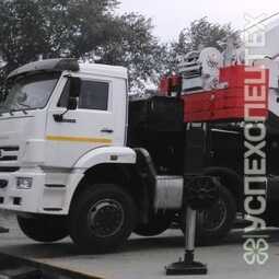 Кран смонтирован на шасси КАМАЗ что гарантировано дает возможность эксплуатировать его в условиях с плохими дорожными покрытиями, в труднодоступных местах и условиях полного бездорожья.
