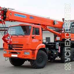 Автокран Клинцы КС-35719-7-02 грузоподъемностью 16 тонн смонтирован на трехосном шасси автомобиля-вездехода КамАЗ 43118 (6х6).