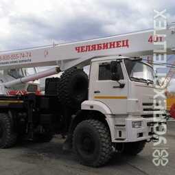 Кран Челябинец КС-65717 смонтирован на четырехосное шасси Камаз 6560 с применением новейших современных технологий краностроения, что обеспечивает высокие грузовые характеристики, надежность работы и удобство эксплуатации.