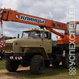 Автокран Клинцы КС-35719-3-02 грузоподъемностью 16 тонн смонтирован на 3х-осном вездеходном шасси Урал 5557, с колесной формулой 6х6.