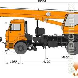 Автомобильный кран КС-35719-1-02 смонтирован на 2-х осном шасси автомобиля Камаз 43253, грузоподъемность которого составляет 16 тонн.