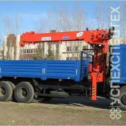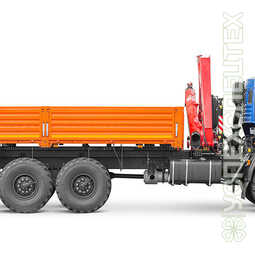 Крано-манипуляторная установка (КМУ) в транспортном положении занимает небольшое пространство между кабиной и грузовой платформой. Манипулятор оборудован компактной внешней стрелой, которая позволяет осуществлять подъем грузов под крюком на большую высоту и вертикально поднимать объемные грузы. Стандартный вариант управления манипулятором - рычагами с земли с двух сторон. -
