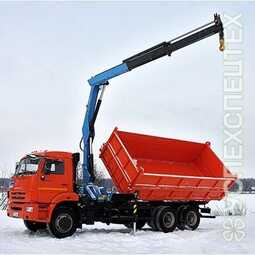 Самосвал Камаз 65115 предназначен для перевозки различных строительных и сельскохозяйственных грузов. За погрузку и разгрузку отвечает крано- манипуляторная установка ИнМан ИМ-180 установленная за кабиной.