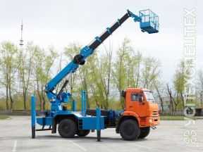 Автовышка позволяет выполнять работы на высоте до 23 метров. Она имеет телескопический подъемный механизм.