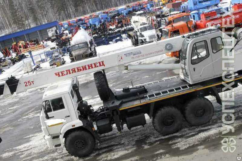 Автокран Челябинец КС-55732-33 шасси Камаз 43118 СЕРИЯ ПЛЮС. Колесная формула 6х6. Грузоподъемность 25 тонн. Длина стрелы 10,3 - 33 м. Двигатель Камаз 740.