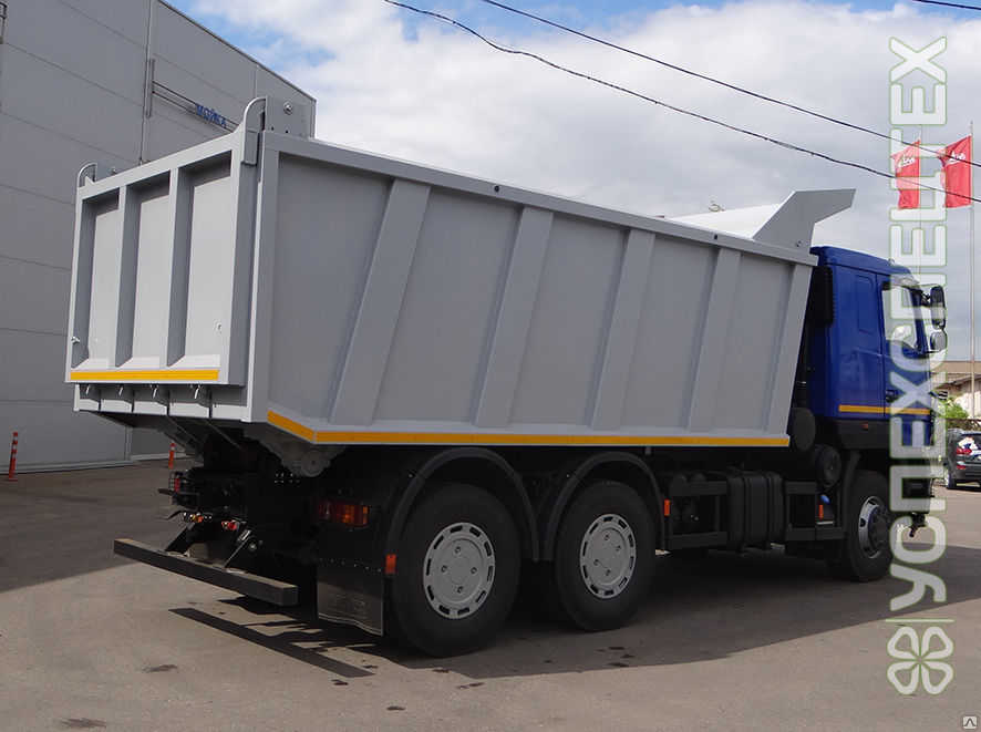 Защитный козырек на переднем борту предотвращает попадание на кабину сыпучих материалов при загрузке кузова;