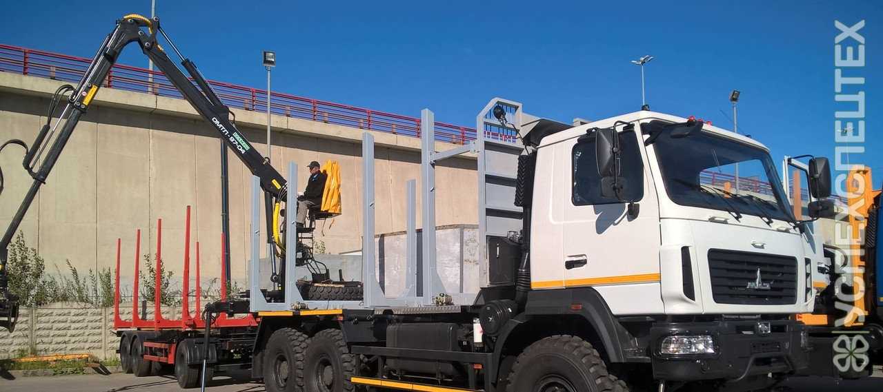 МАЗ с Гидроманипулятором ОМТЛ-97.04 с двумя телескопами, максимальный вылет стрелы, 8.5 м, грузоподъемность на max. вылете, 1120 кг; комплектуется гидравлическим распределителем , ротатором , стандартной подвеской, маслобаком, гидронасосом и грейферным захватом