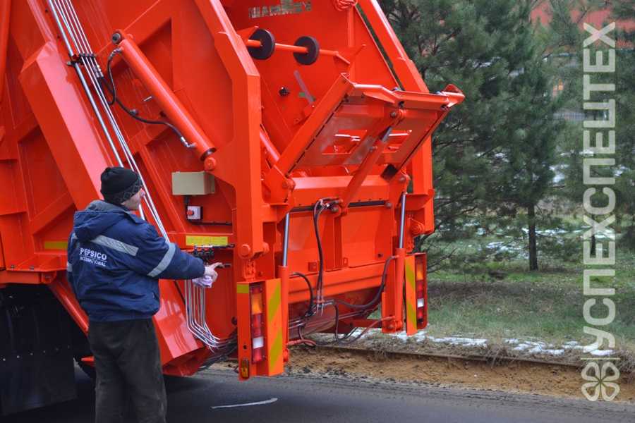 В состав специального оборудования входят: кузов, задний борт, толкающая плита, боковой манипулятор, гидравлическая и электрическая системы.